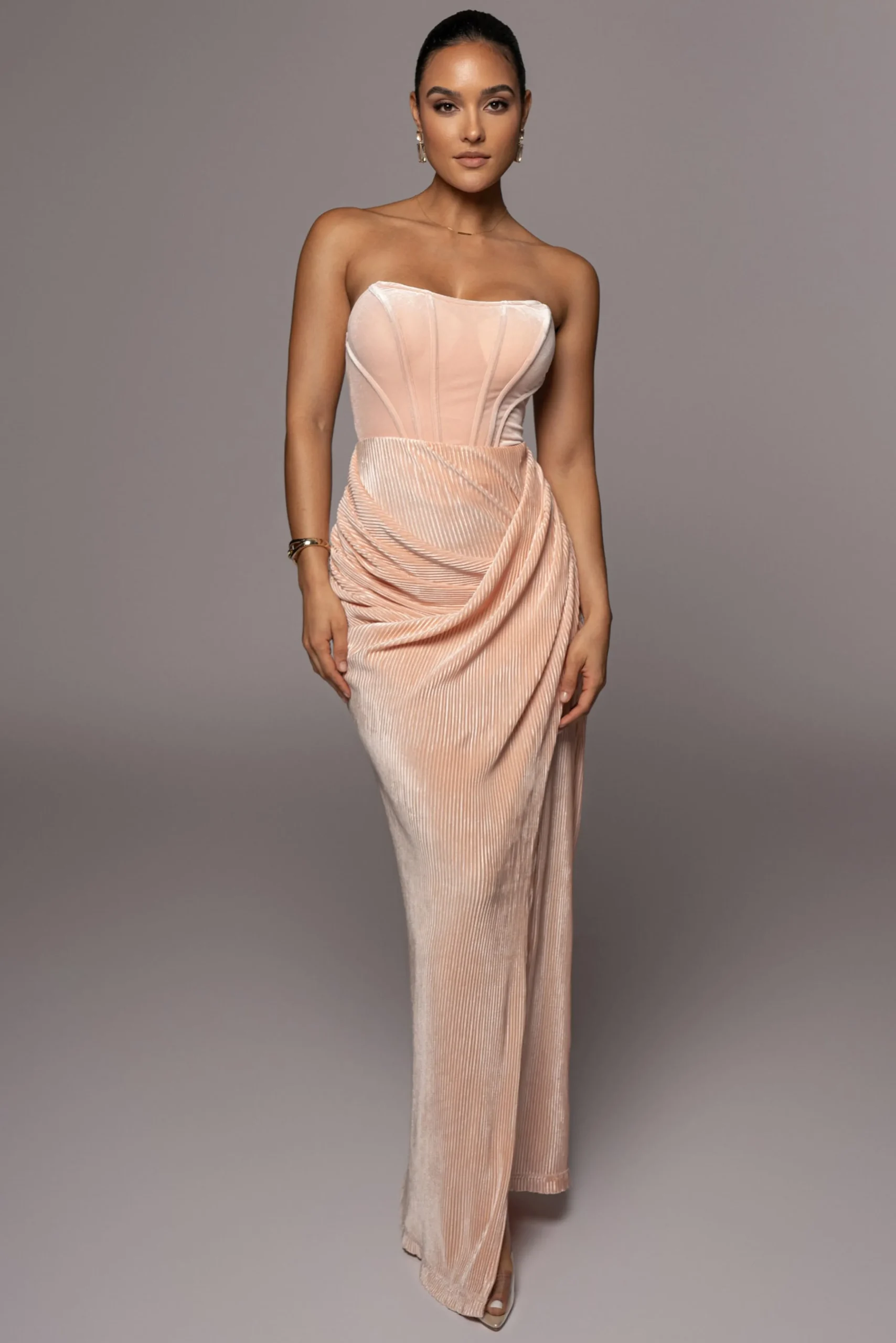 EXCLUSIVELY DESIGNED BY US FOR YOU. It’s love at first sight with our BLUSH TRUE BLISS MAXI SKIRT! Crafted in a fully pleated material, this irresistible maxi skirt showcases a ruched detail with a flattering drape leading to a slit on one side. Complete with an elastic waistband for flexible fitting. Stretchy.