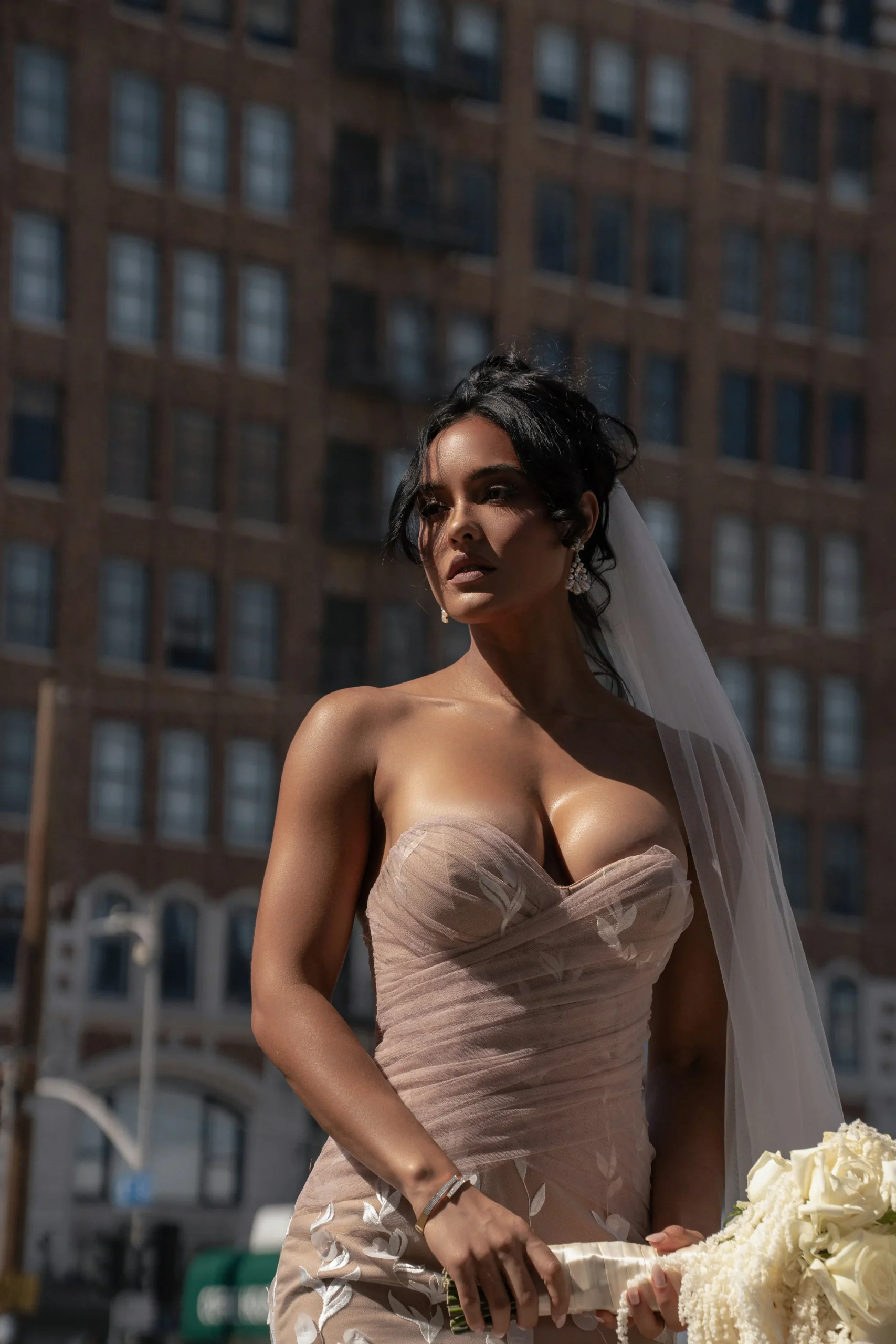 Designed for the JLUXLABEL Bridal Collection. Indulge in sheer luxury with our Ivory Everlasting Embroidered Gown. This breathtaking bridal gown is made from premium quality fabrics, featuring intricate rose embroidery on a delicate mesh overlay. The sweetheart neckline with built-in boning and padded/wired bra cups create a flawless silhouette. Complete with nude underlining and silicone grip at the bust for a secure hold. Hidden back zipper closure. No stretch.