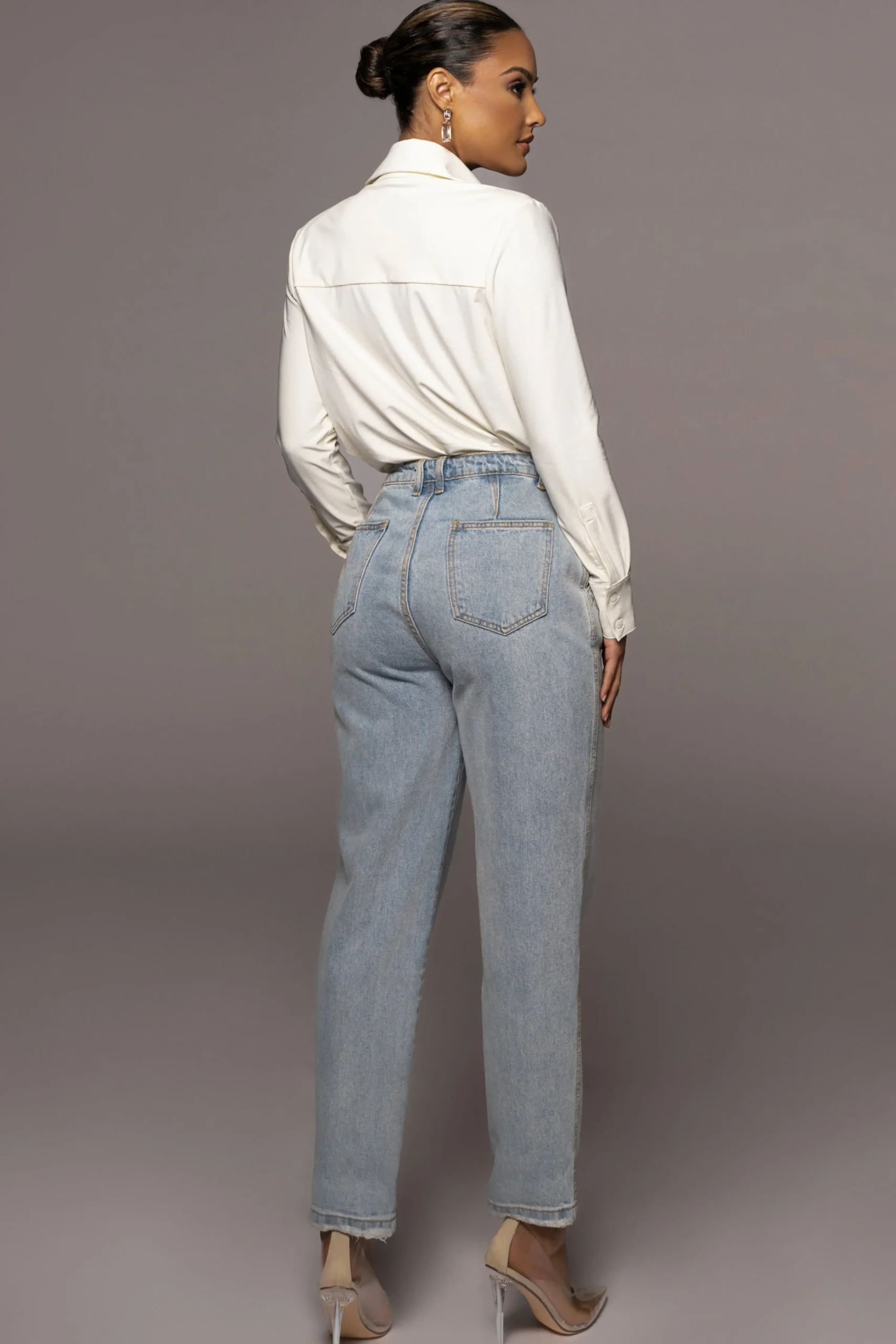 EXCLUSIVELY DESIGNED BY US FOR YOU. Our IVORY JAXSON BUTTON UP is just as effortless as it is essential! Featuring a spread collar, this classic button up top comes with long sleeves, two functional flap pockets, and button detailed cuffs. Pair with our MAYLIN PANTS for the full look. No stretch.