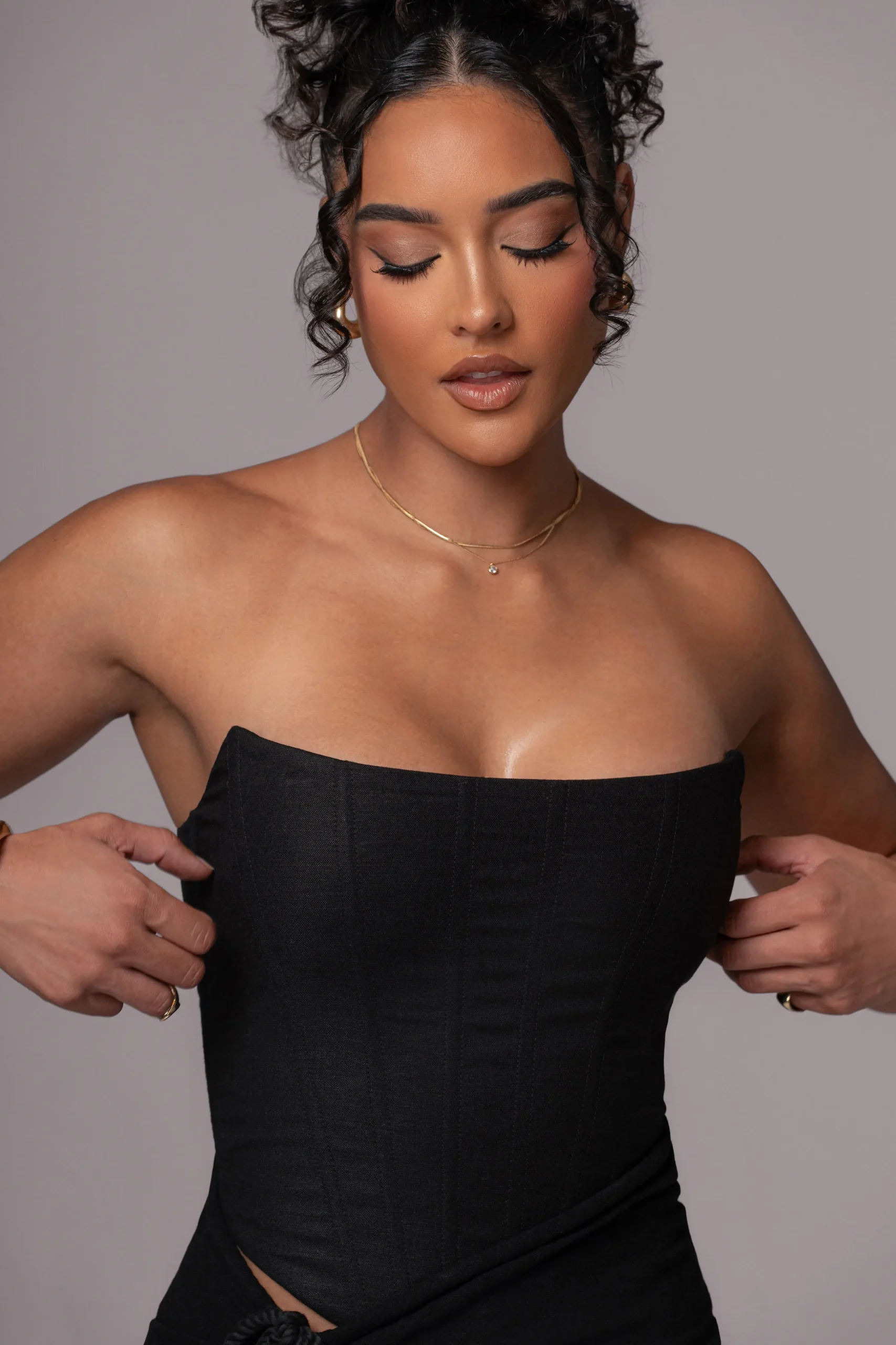 You’ll be the epitome of style when wearing our Black Fenix Reversible Linen Corset. This eye catching corset showcases a strapless neckline with boning throughout the front and back for added structure and support. Crafted in a Cotton/Linen blend, this corset top is designed with a reversible feature consisting of a flattering front with boning detail and the other with a solid bodice for a smoother look. Complete with an elastic back for flexible fitting. Gold tone zipper closure. Stretchy.