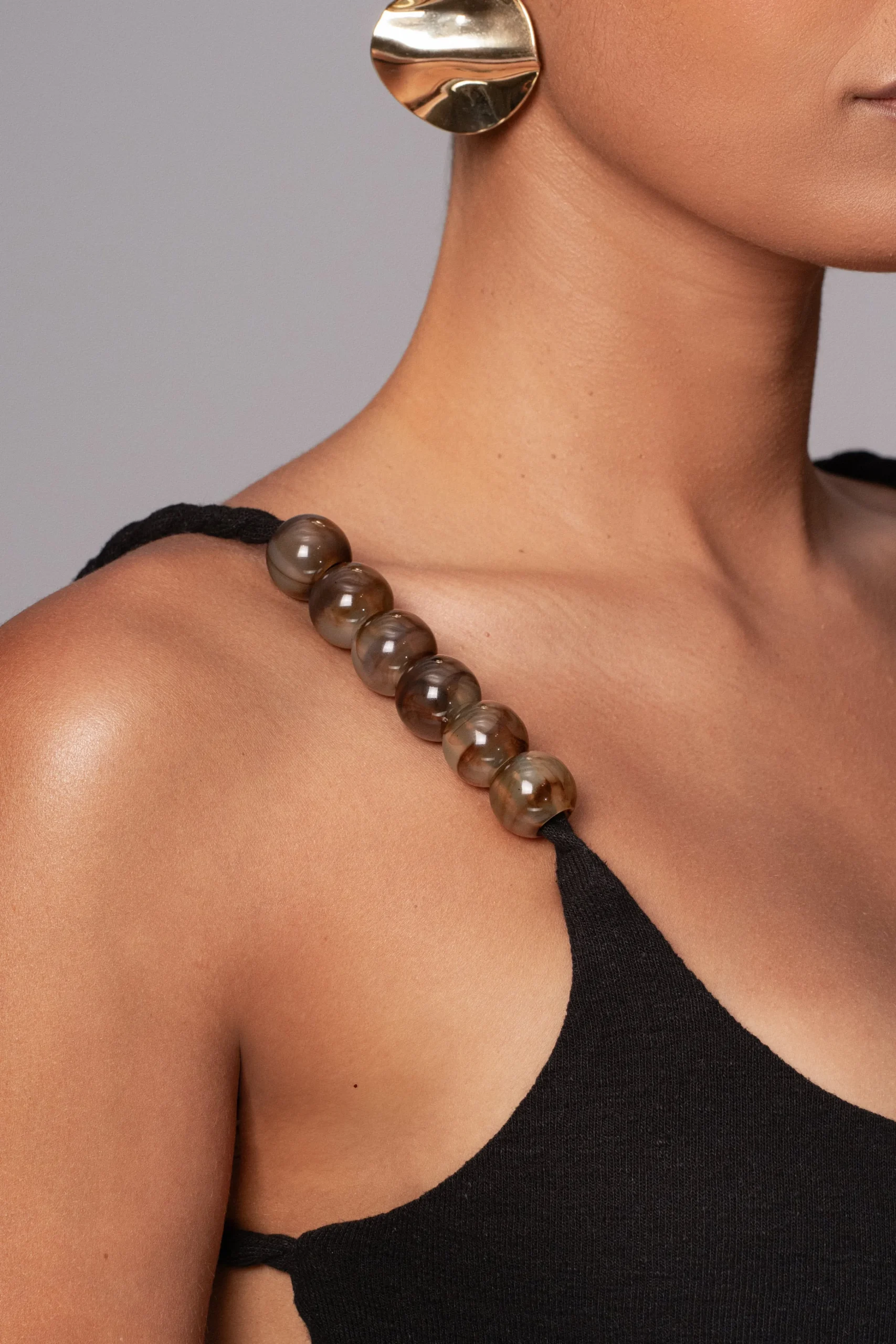 Sail away in style with our Black Nautical Escape Maxi Dress. This stunning maxi dress features a round neckline and twisted straps adorned with marble beads, giving it an elegant touch. Crafted from a lightweight fabric, this dress is perfect for a day at the beach or a night out on the town. Double lined. Stretchy.