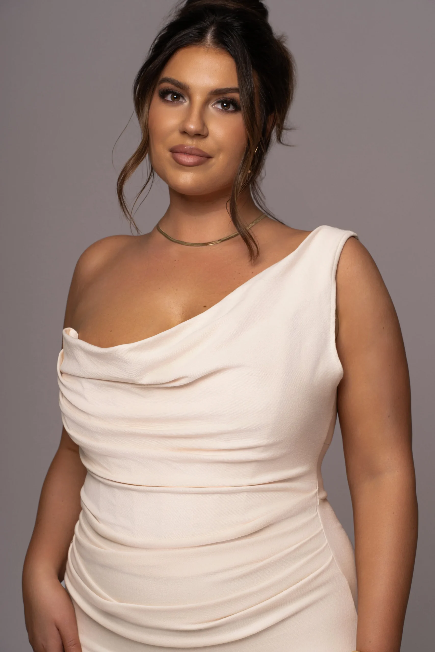 Buttercream Denim Krishna One Shoulder Maxi Dress*JLUXLABEL Clearance