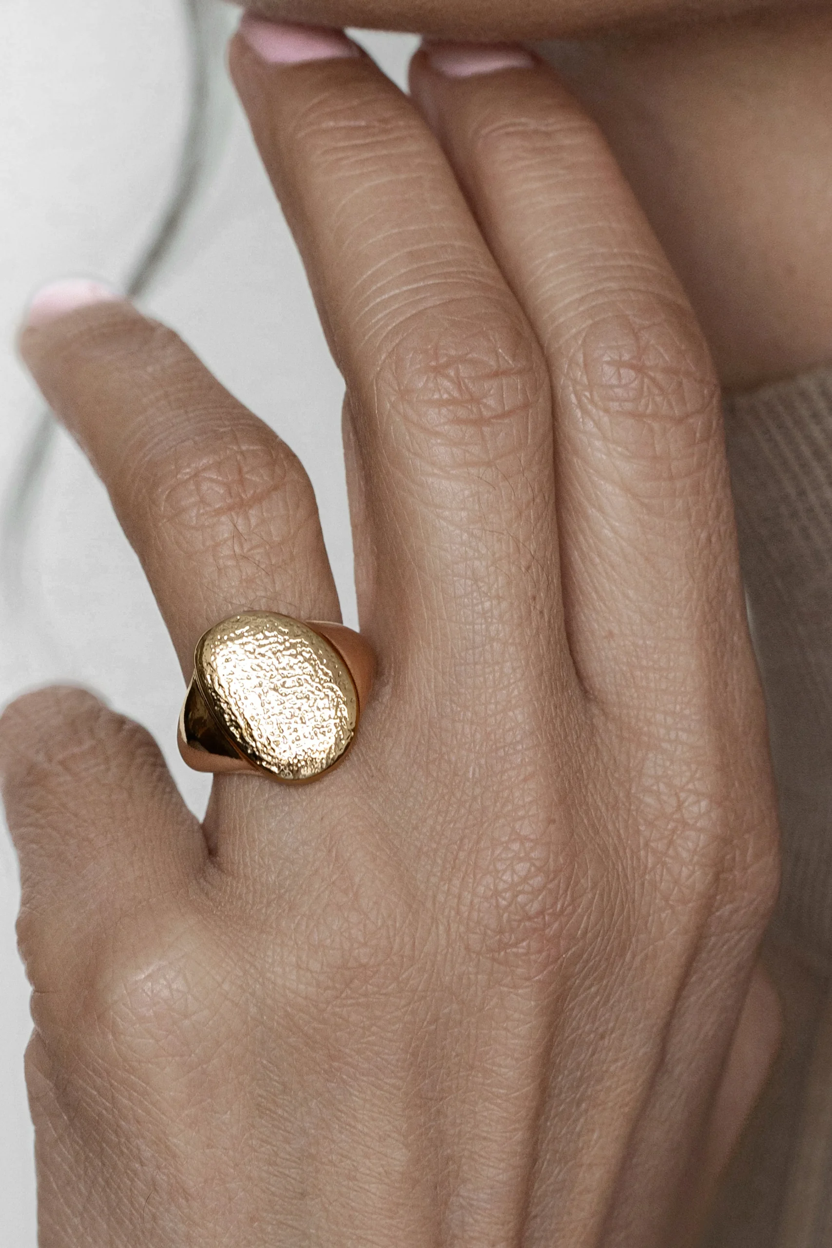 Our Gold Dessi Ring features a gold-tone finish with a stylish dome design and textured hardware. This timeless ring is fit for any occasion.
