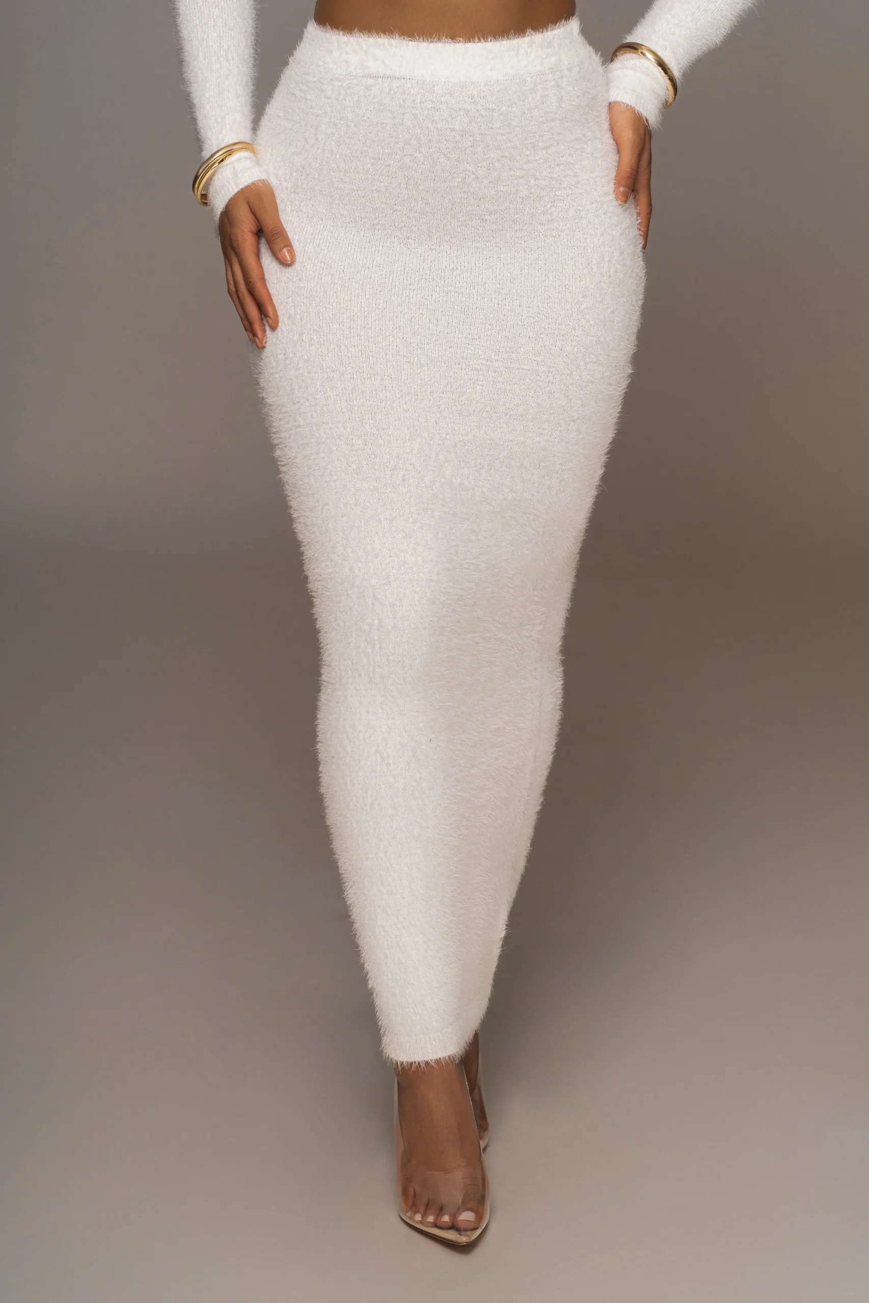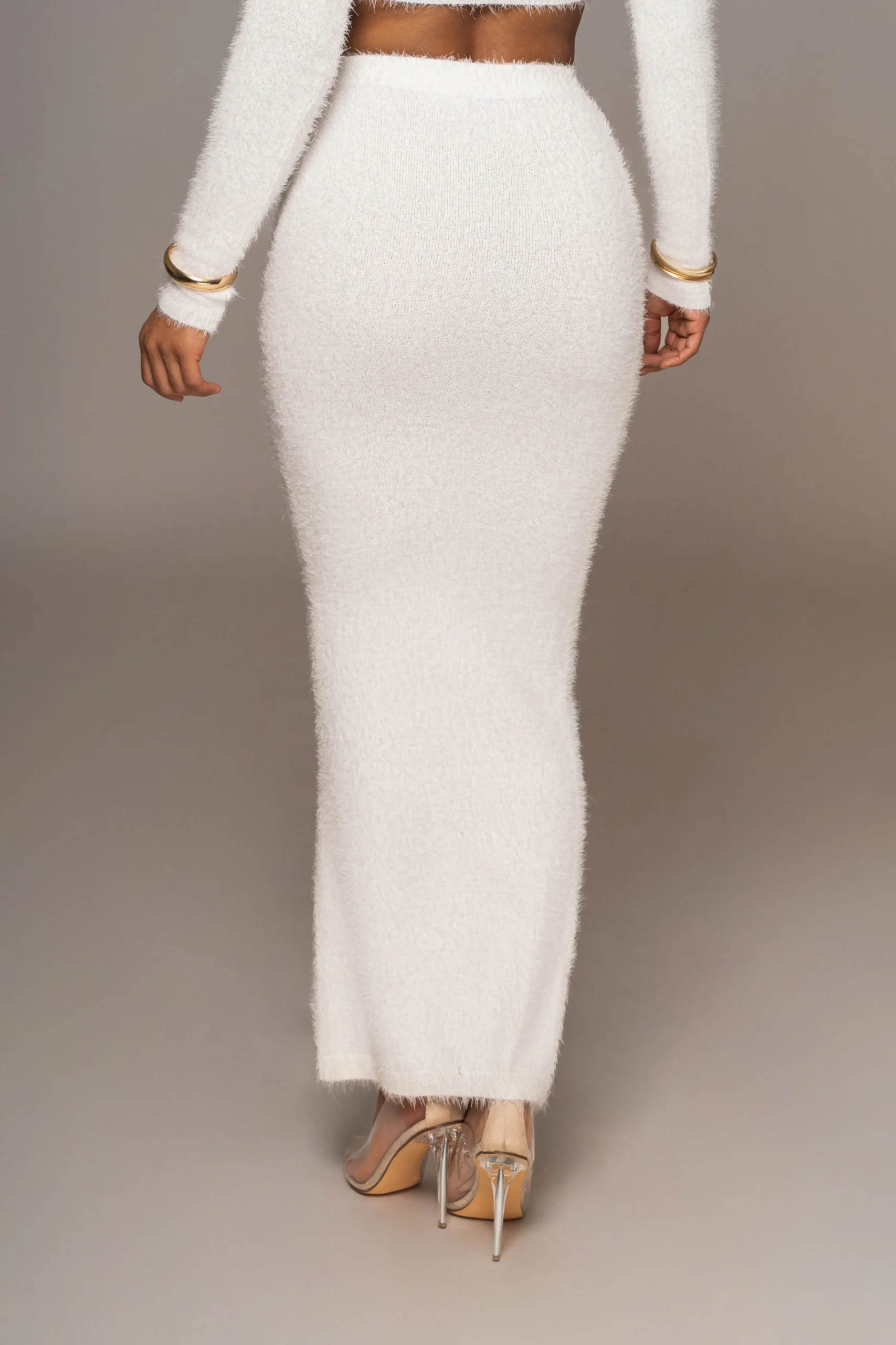 Our new Ivory Annette Sweater Knit Skirt Set combines style and function. Crafted in a fuzzy knit fabrication, this versatile skirt set features a long sleeve top with a v neckline and cropped hem. The matching skirt features a pencil style silhouette with maxi length hem. Single lined. Stretchy. Sold as set.