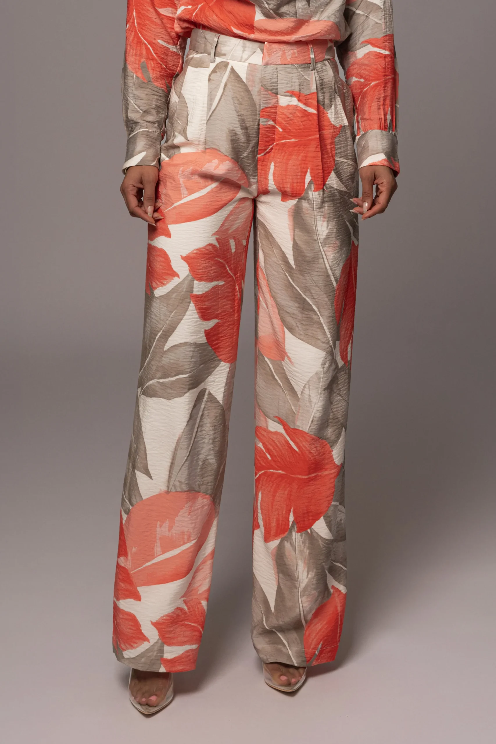 Bring on Summer with our Ivory Palm Print Drew Crinkled Trousers. These straight-leg trousers are made from lightweight, crinkled fabric in a tropical floral print adding a delicate summer touch. Featuring front pleating with a clasp and zipper closure, functional side pockets, belt loops, and faux welt pockets. Pair with our Greta Collared Top for the full look. Internal waist button. Lined interior. No stretch.