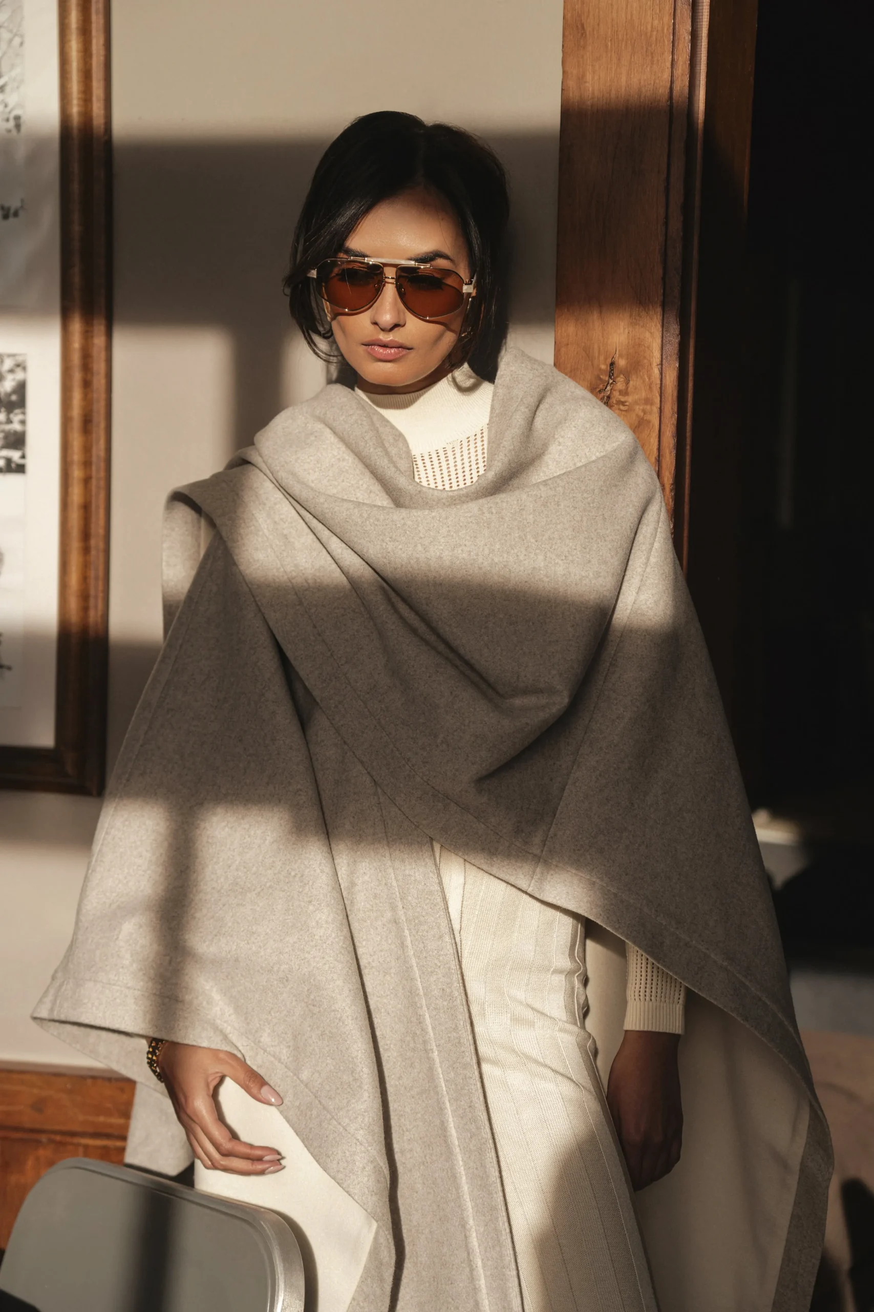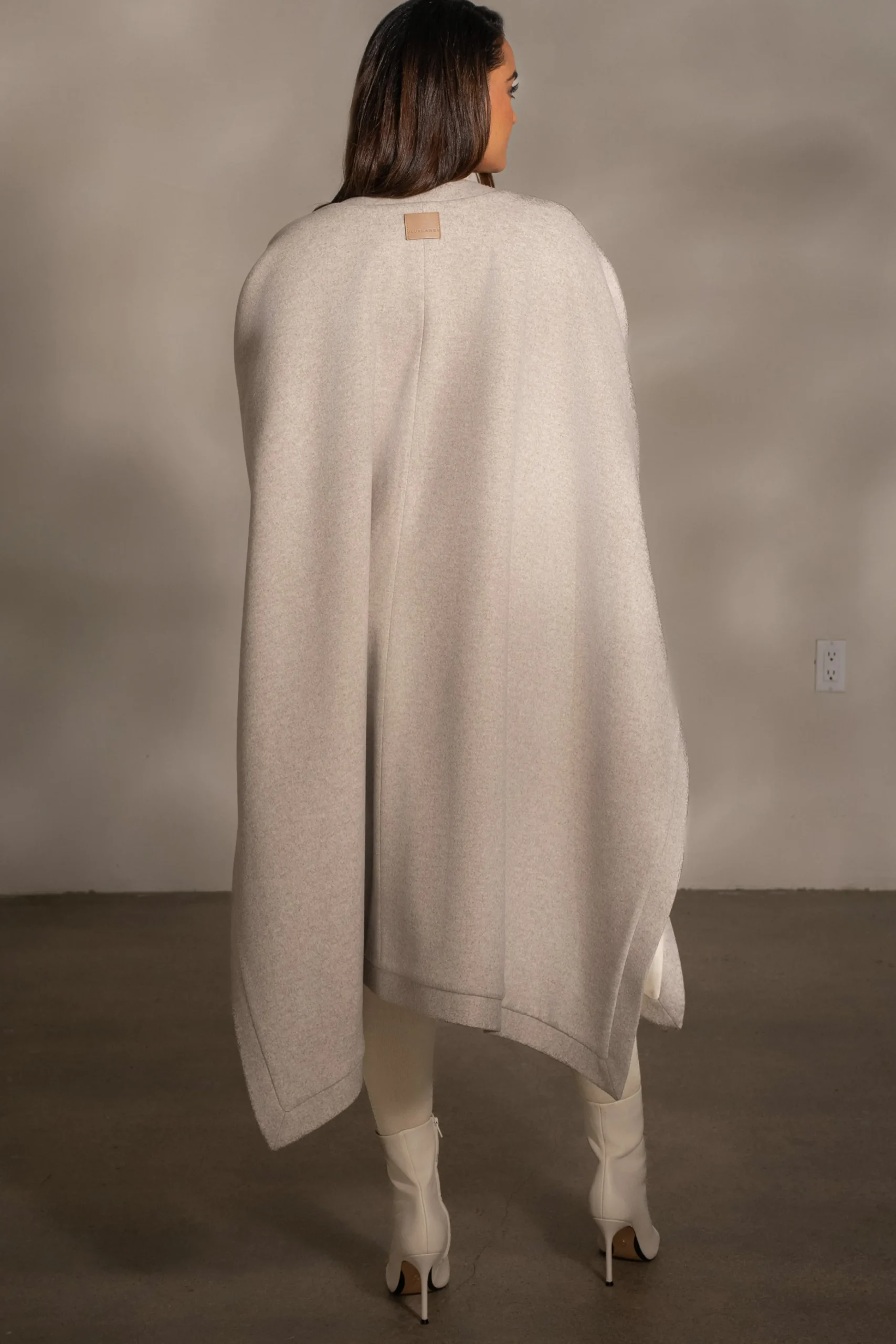 Experience indulgent luxury with our Ivory Park City Reversible Shawl. This reversible shawl is the epitome of comfort and style, offering versatile wearing options with its elegant design. Crafted in a soft touch material ensuring you’re wrapped in warmth all season long. One side offers a heathered oat tone with no contrast trim, The reverse side is featured in Ivory with a a heathered oat tone trim. Oversize.