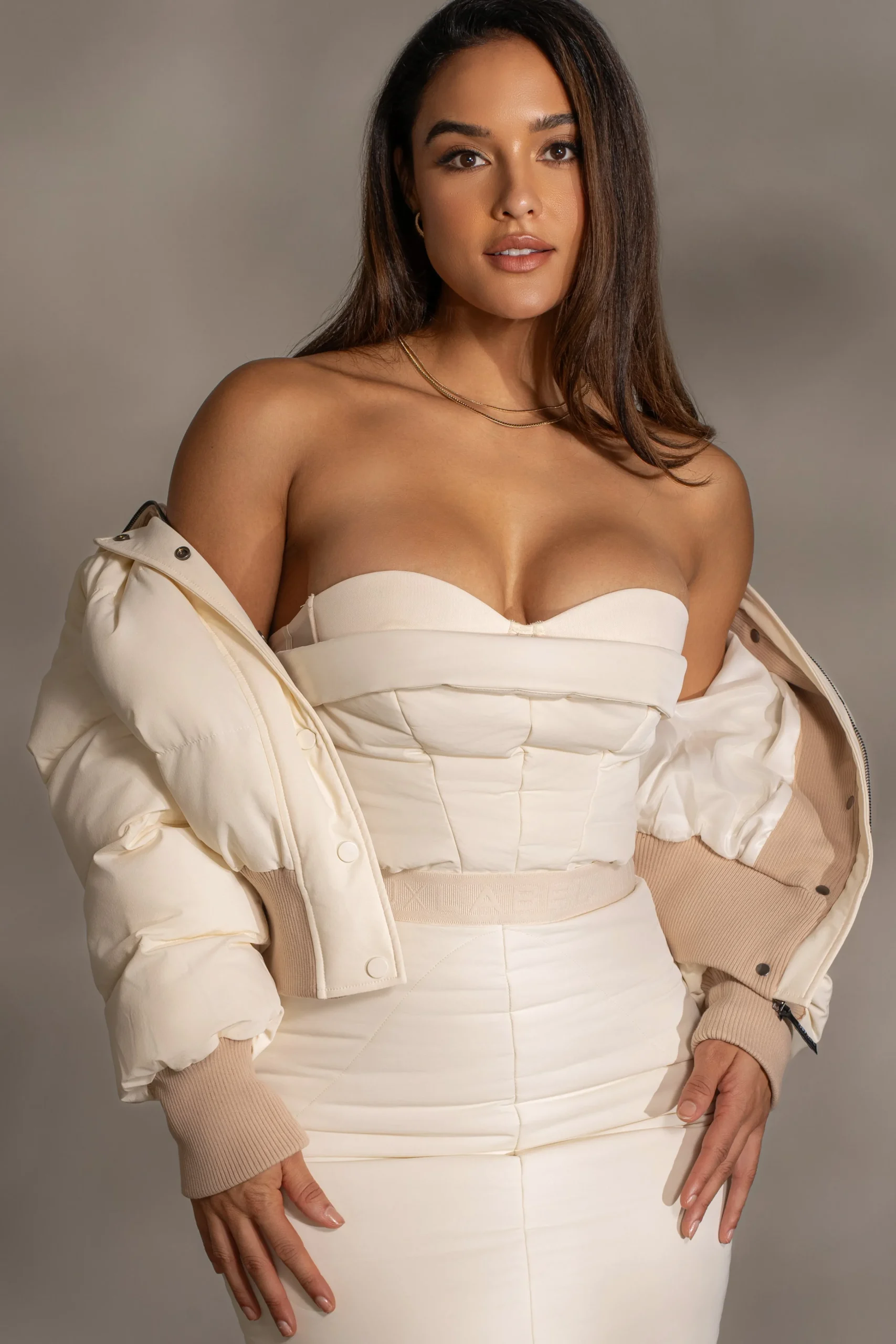 Embrace the unknown with our Buttercream Stassie Ribbed Jacket. Designed for the bold and adventurous, this ribbed puffer jacket features a snap/zipper front closure and functional side pockets with rib detailing throughout for the perfect finishing touch. Layer up with confidence and conquer any challenge in style. Pair with our Addyson Skirt Set for the full look. Water resistant. Minimal stretch.