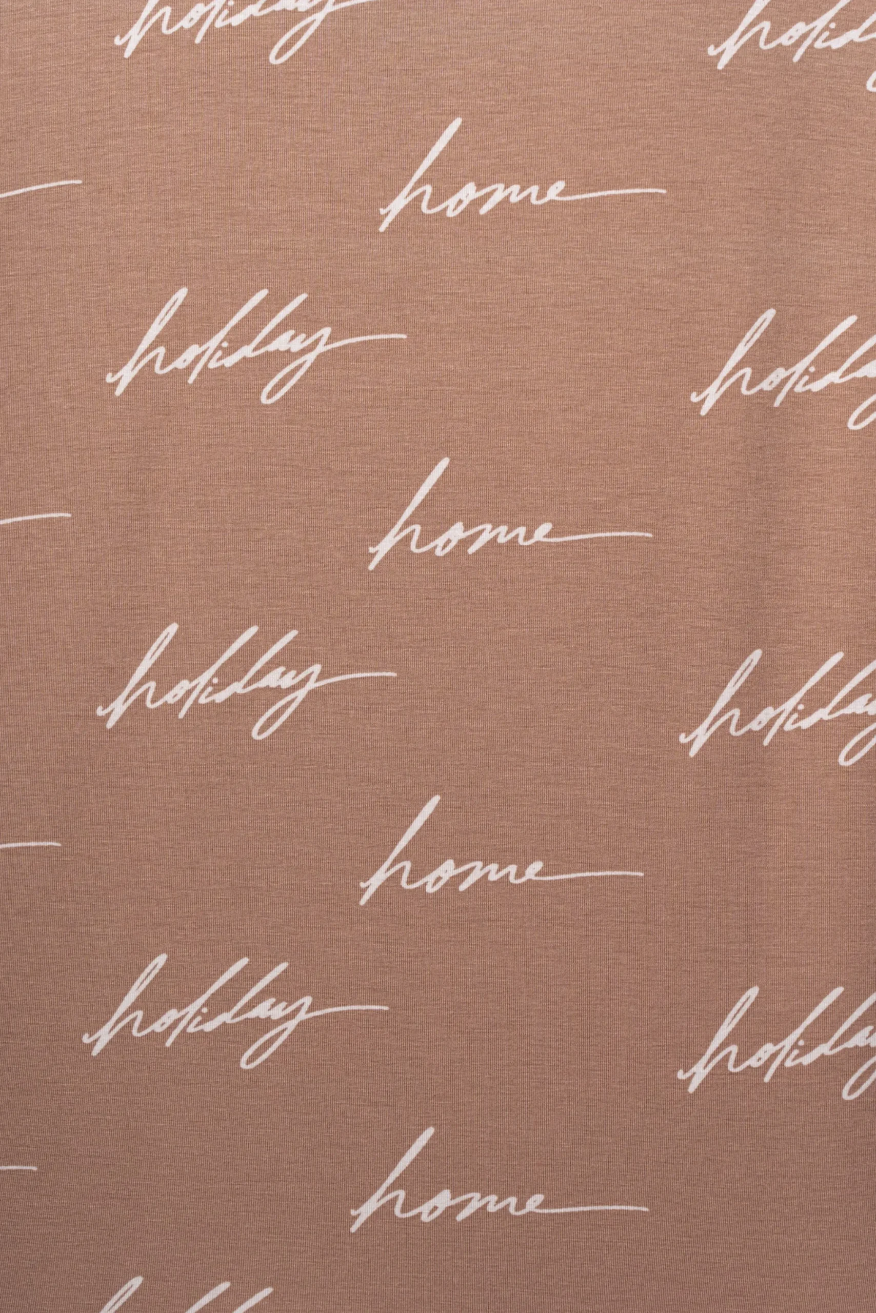 Complete your Christmas morning wardrobe for the entire family with our White/Tan ‘Home For The Holidays Kids Pajama Set’. Our pajamas feature a notch collar with long sleeves, a chest pocket, and button front closure. The matching bottoms come with an elastic waistband and functional side pockets. An elegant font print reading ‘Home’ and ‘Holiday’ in cursive creates a festive and polished finish. Match with the whole family and purchase the Home For The Holiday Kids Pajama Set for the perfect Christmas photo! Single lined. Some stretch. Sold as set.